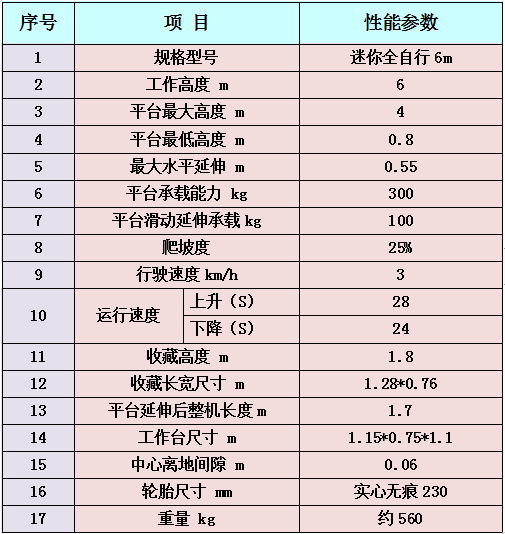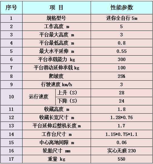 3、迷你全自行升降平台参数